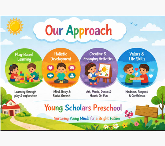 At Young Scholars we work everyday to build a solid foundation for the schooling life and beyond of our students. An ideal early childhood education can bring a significant positive difference in the intelligence, creative, social and emotional quotients of a child. However this is not a one size fits all method.